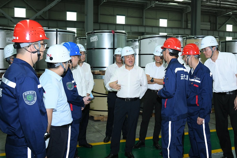 翁祖亮觀看數(shù)字化大屏了解企業(yè)生產(chǎn)經(jīng)營情況 翁祖亮調(diào)研企業(yè)園區(qū)冷軋加工區(qū)并與一線干部職工交流 翁祖亮調(diào)研企業(yè)園區(qū)酸洗加工區(qū)