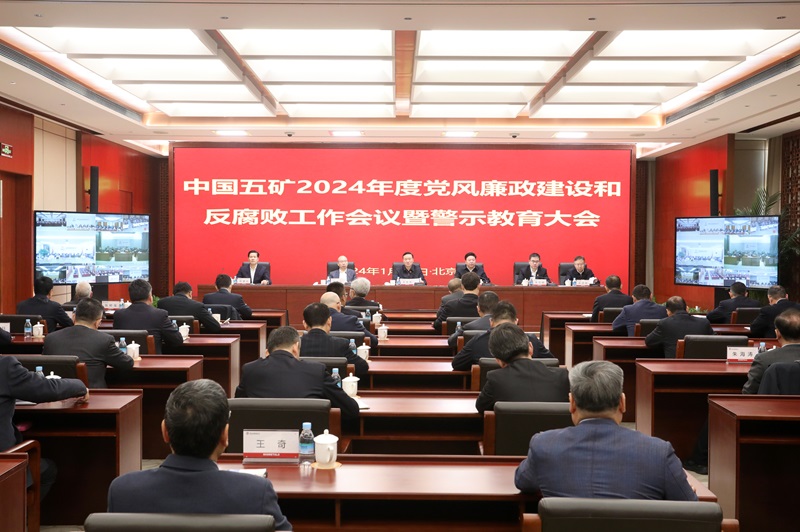 1月29日,中國五礦召開2024年度黨風廉政建設和反腐敗工作會議暨警示教育大會,深入學習貫徹二十屆中央紀委三次全會精神特別是習近平總書記關于黨的自我革命的重要思想,認真落實國務院國資委黨風廉政建設和反腐敗工作會議要求,總結2023年工作,研究部署2024年重點任務。中國五礦黨組書記、董事長翁祖亮出席會議并講話。總經理、黨組副書記國文清主持會議。黨組副書記、董事王杰之傳達中央紀委三次全會精神。紀檢監察組組長、黨組成員張貞民作紀檢監察工作報告并通報查處的典型案件。中國五礦黨組其他成員出席會議。