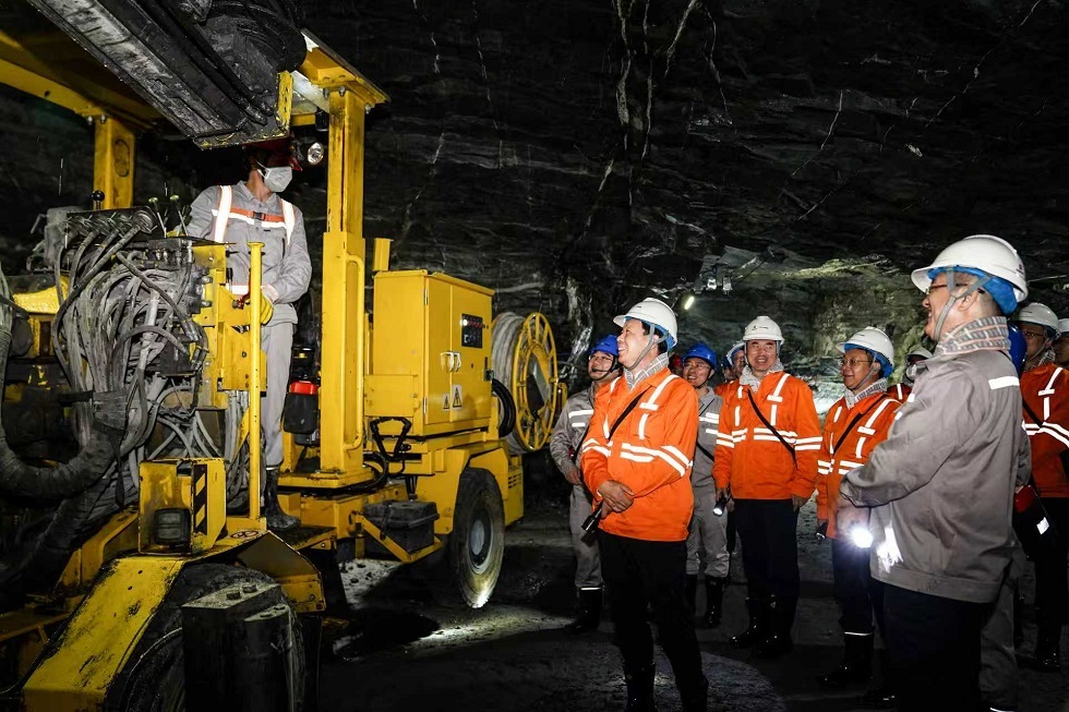陳得信強調,要深入學習貫徹習近平總書記系列重要講話和重要指示批示精神,加大資源增儲上產力度,提升戰略性礦產資源保障能力。要堅持高質量發展引領,加速推動高端化、智能化、綠色化轉型,按照“資源變成材料、材料變成產品、產品形成產業”思路,提升資源綜合利用水平。要深化阿米巴經營模式,堅持算賬經營創效、精細管理增效、改革創新提效,不斷提升現代化治理水平。要強化內部協同,狠抓項目建設質量和進度,同步推進擴產擴能與轉型升級,嚴格落實中國五礦黨組關于深化專項治理和系統整治要求,逐級壓實責任,切實打造廉潔工程、安全工程、優質工程。要推動科技創新和產業創新深度融合,加快構建現代化金屬礦業產業體系。要關心關愛干部職工,完善培養體系,努力打造一支懂管理、懂技術、懂經營的復合型人才隊伍。要建立以落實安全生產責任制為核心的安全管理體系,堅決守住安全環保紅線底線。要推動黨的建設與生產經營深度融合,鞏固拓展深入貫徹中央八項規定精神學習教育成果,持續營造正氣充盈、向上向善、和諧穩定的良好環境。